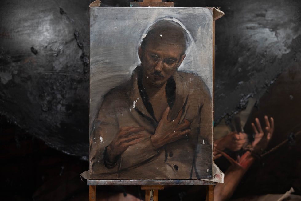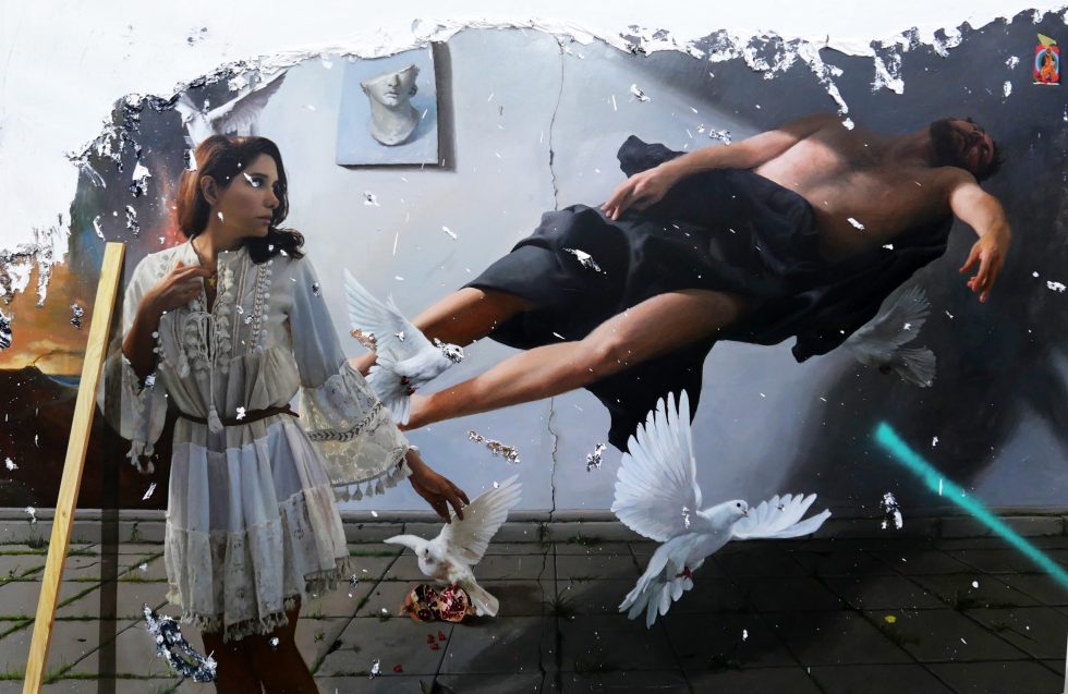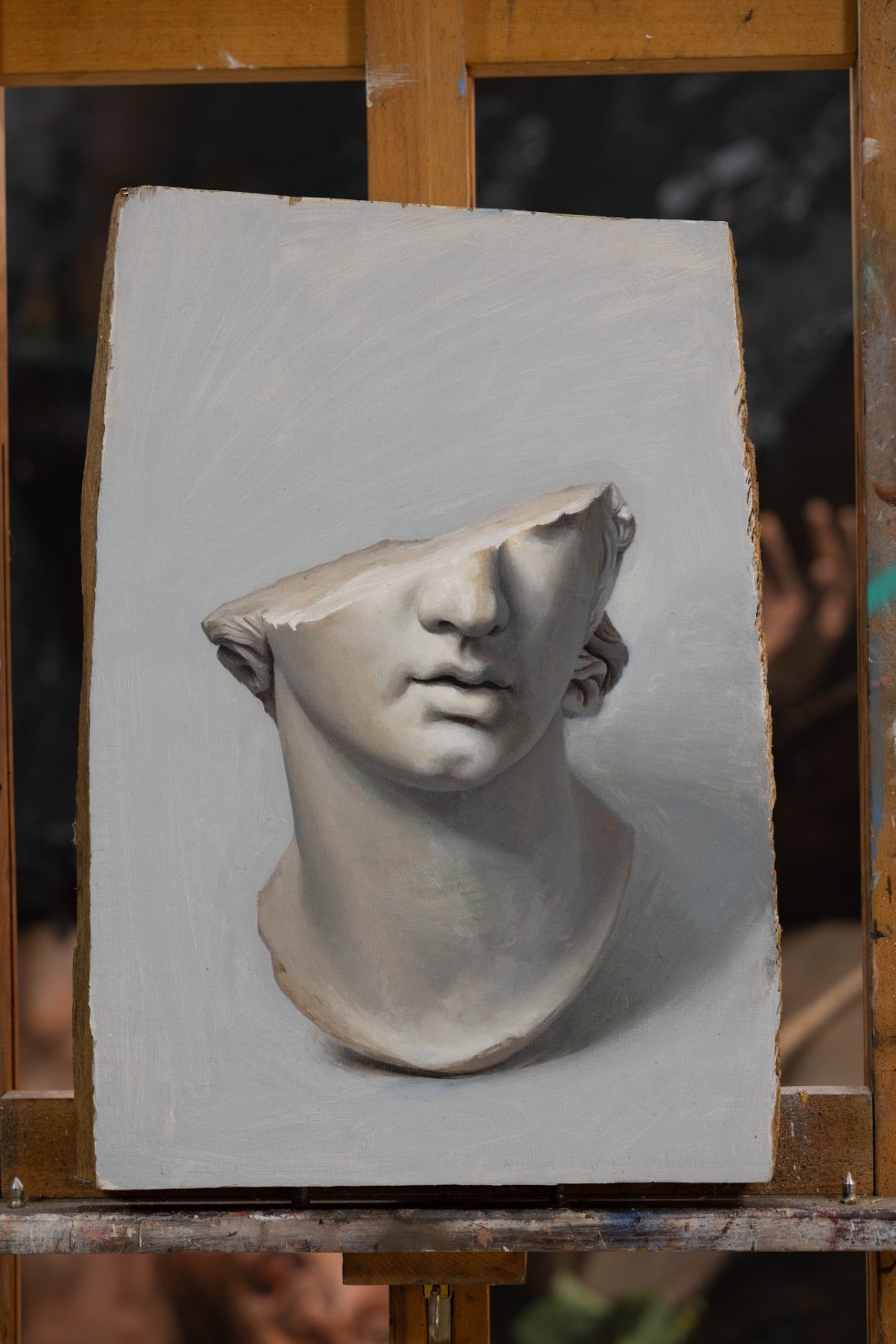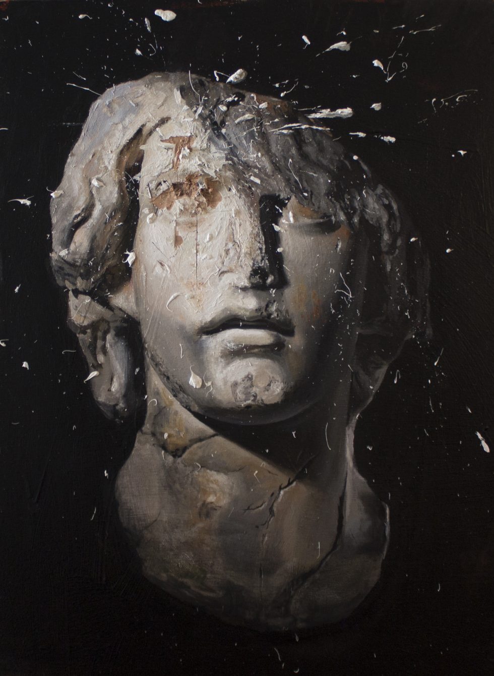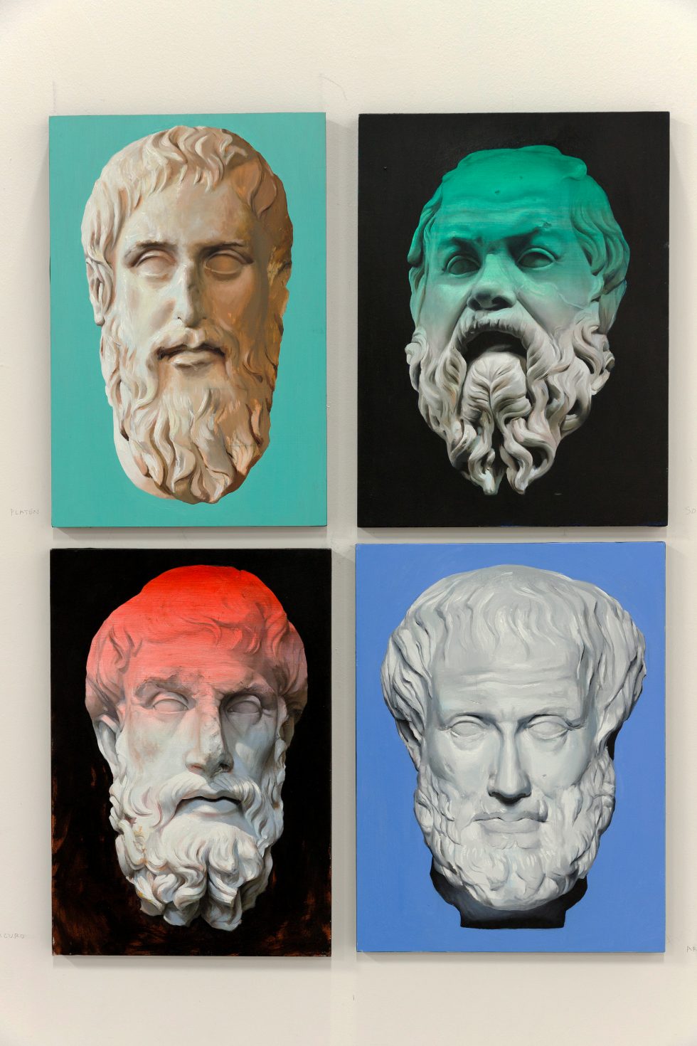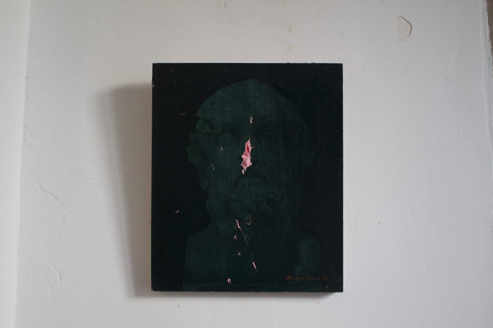 Marcos, reviviendo la gran tradición de la pintura de historia europea, mezcla así héroes venidos de tiempos antiguos y se nutre de varias fuentes. Como en nuestros palacios europeos destinados a la educación de los príncipes, imitados por nuestros museos para el deleite de todos, Marcos escudriña historias tomadas de la Biblia y de la mitología griega, desde Homero hasta Ovidio, contrastando o comparando las figuras del deseo, del hybris (exceso en griego antiguo), la muerte, la compasión o el pavor. Estos lienzos, maderas y mármoles están llenos de cuerpos retorcidos o estirados por el esfuerzo o la pasión: Sísifo o San Jerónimo, Marsias o San Bartolomeo desollado, Jacob y Sísifo de nuevo, Danae, Venus, Leda o Tetis, Atenea o Judit, las Tres Parcas -Cloto, Laquesis y Átropos- o la Magdalena, Santa Ágata y Santa Lucía. Tantas figuras que pueblan nuestras iglesias, nuestros palacios, nuestros museos y nuestros sueños o pesadillas consiste en ser dueños de la propia vida”